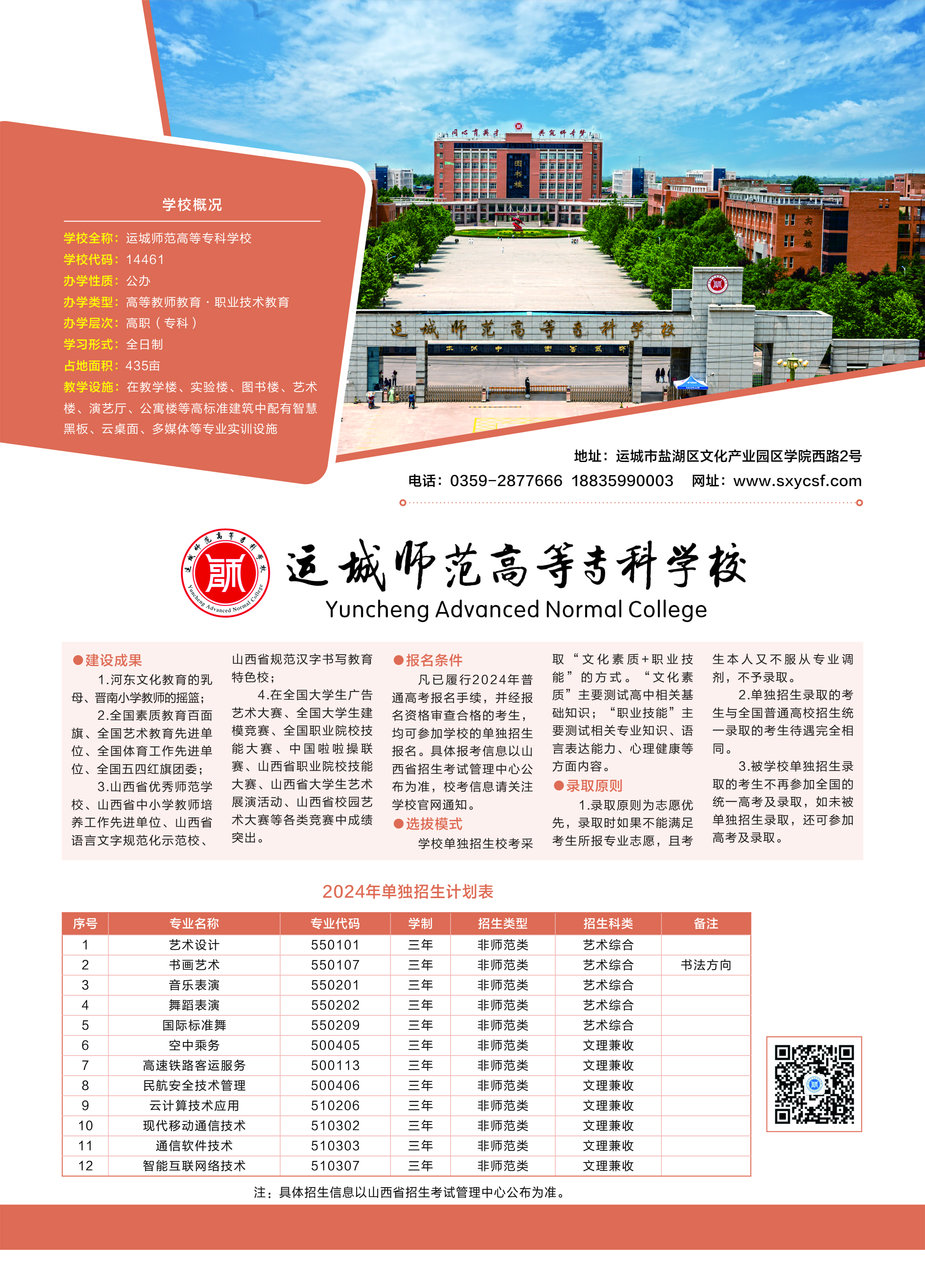 运城师范高等专科学校2024年高职单招招生简章